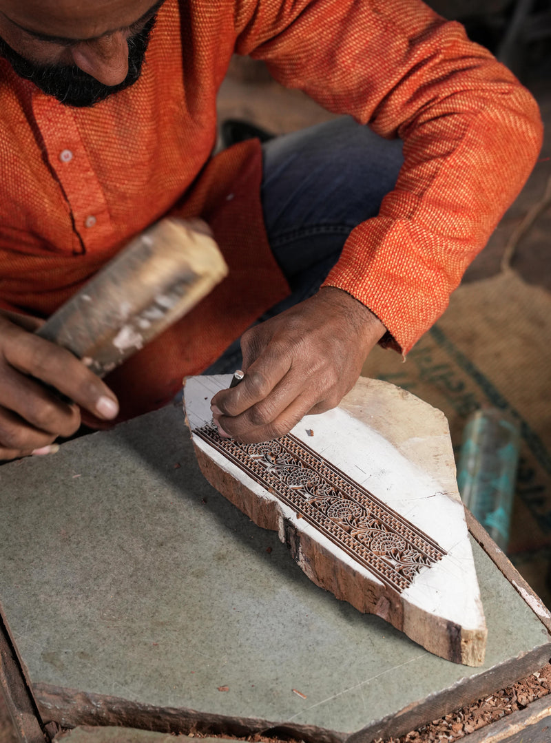 Our process is grounded in centuries-old techniques—block printing, hand weaving, and natural dyeing—reimagined for modern living. Chosen with care. Built with meaning. This is slow design, made to last