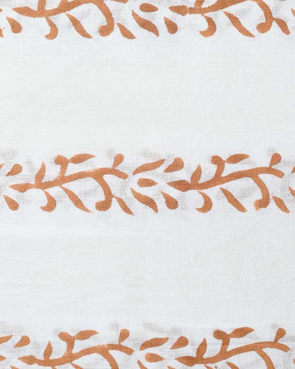 Hand-carved nature-inspired motifs unfold across this fabric in a rhythmic, repeating design. Each layer is block printed by hand using centuries-old techniques passed down through generations of artisans in India. The result is a textile rich in character—bringing softness, dimension, and a distinctly human touch to any space. Designed to layer with ease, it complements both relaxed and refined interiors.