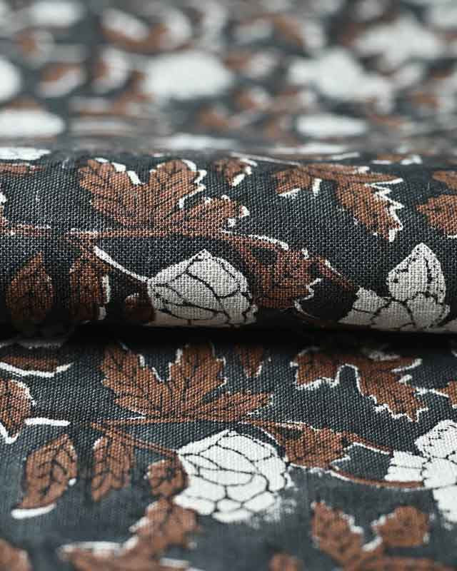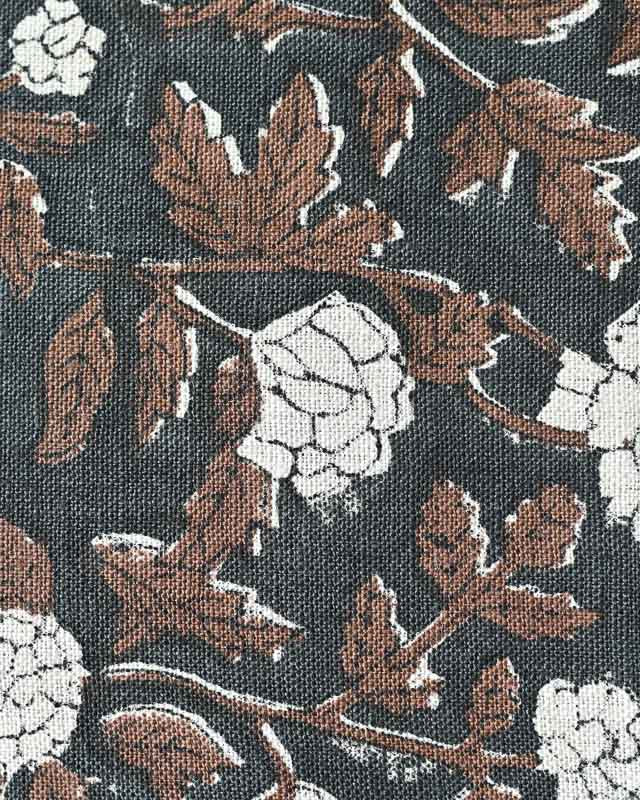Hand-carved nature-inspired motifs unfold across this fabric in a rhythmic, repeating design. Each layer is block printed by hand using centuries-old techniques passed down through generations of artisans in India. The result is a textile rich in character—bringing softness, dimension, and a distinctly human touch to any space. Designed to layer with ease, it complements both relaxed and refined interiors.