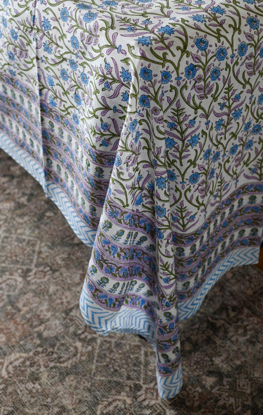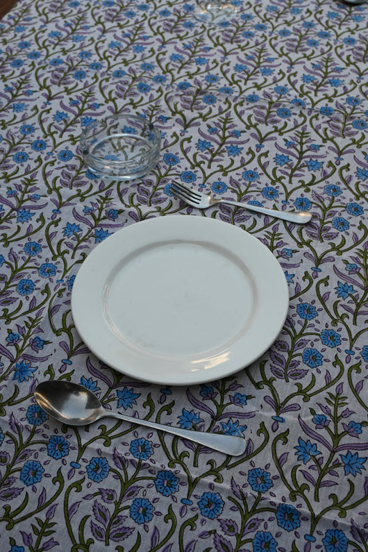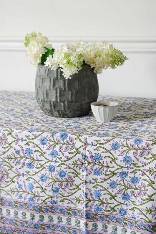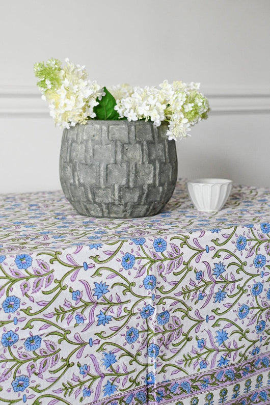 Elevate everyday dining with our hand-block printed tablecloths—crafted using traditional techniques passed down through generations. Each design is carved into wooden blocks and printed by hand, layer by layer, by skilled artisans in India. The result is a tablecloth rich in character and subtle variation—designed to bring artistry, warmth, and a collected feel to any gathering, casual or formal.