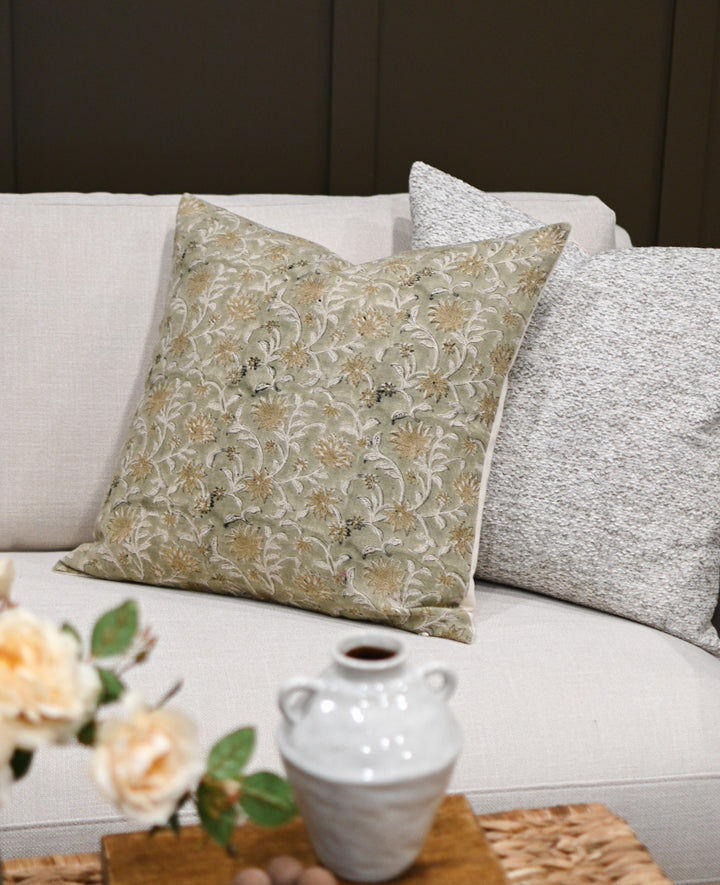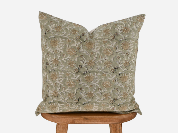 With a beautiful all-over botanical print, this pillow cover is brought to life through traditional block printing. Each design is carved into wooden blocks and carefully printed by hand, one layer at a time, by skilled artisans in India. The result is a richly detailed piece—crafted with care, defined by timeless style, and truly one of a kind. Effortlessly versatile, it layers into both relaxed and refined spaces with ease.