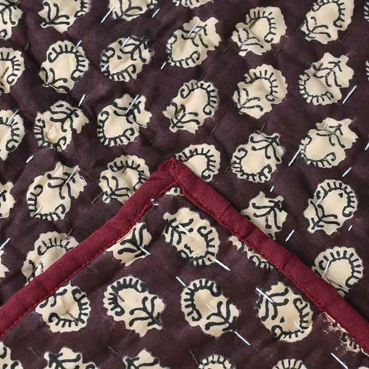 The Bluebell Hand Block Printed Quilt is thoughtfully crafted from soft, breathable cotton and filled with pure cotton batting to keep your little one cozy in every season. This baby quilt features a timeless buti pattern, hand block printed by artisans using carved wooden blocks—a traditional craft that carries subtle variations and a story of heritage in every stitch. Finished with delicate hand quilting and a neatly tailored border, it is lightweight, easy to layer, and designed to be both practical and beautiful. Perfect for nurseries, gifting at baby showers, or adding a touch of artisanal warmth to your child’s space.
