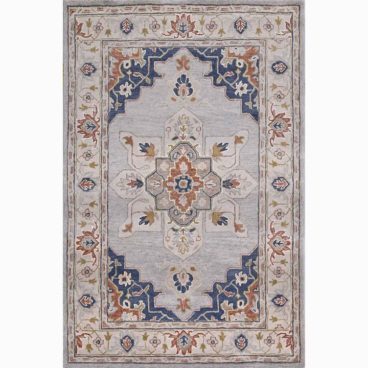 Rooted in timeless artistry, this hand-tufted rug is crafted from a premium blend of wool and viscose, offering both durability and refined beauty. The strength and warmth of wool meet the silky sheen of viscose, creating a plush surface that feels luxurious underfoot. Inspired by classic Oushak motifs, its decorative floral pattern brings depth and tradition into a modern setting. With a palette of deep steel grey, black, and soft accents of white dove and sage, this hand-tufted wool area rug anchors interiors with sophistication and character. Perfect for those who appreciate heritage design reinterpreted with contemporary materials.