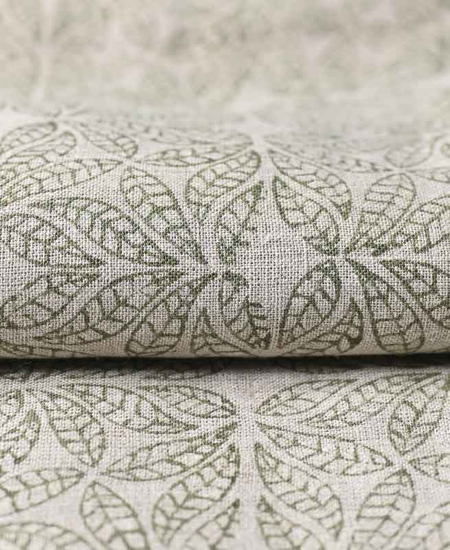 Crafted using time-honored block printing methods, this fabric features hand-rendered patterns with subtle variation and depth. Each design is carved into wooden blocks and printed layer by layer by skilled artisans in India—a process that requires precision, patience, and masterful technique. The result is a richly expressive textile that blends traditional artistry with modern versatility, designed to layer beautifully into both relaxed and refined spaces.