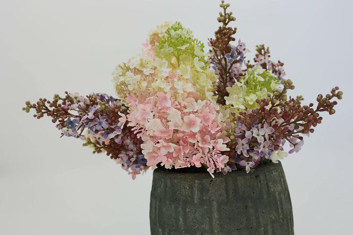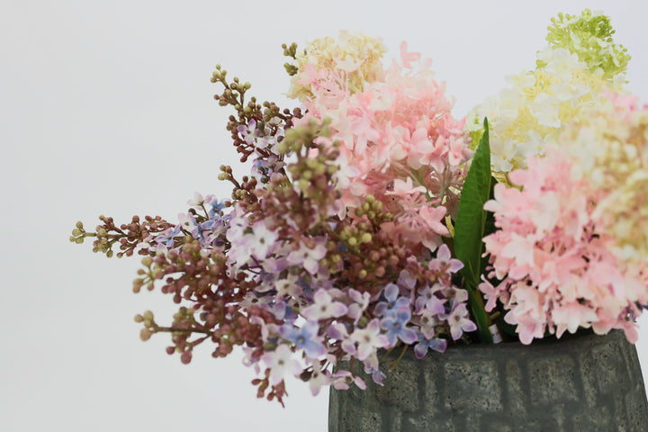 Authentically replicating the artistic essence and color palette of the snowball hydrangea plant, the Faux Pink Hydrangea Stem is perfect for individual styling or inclusion in a vase arrangement. With its intricate petals and a stem adorned with textured leaves, this faux stem adds captivating interest and dimensional flair to your decorative setups.