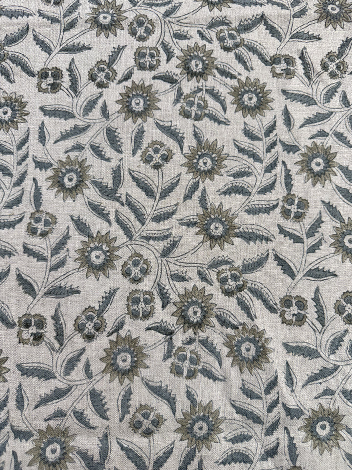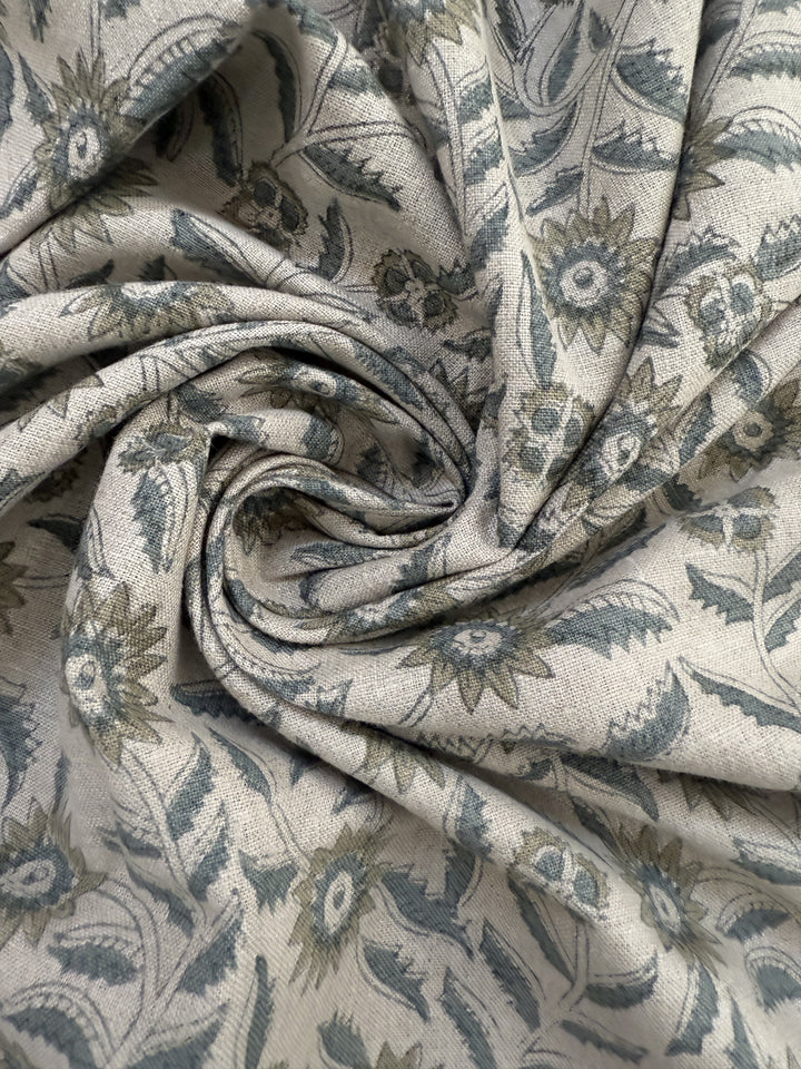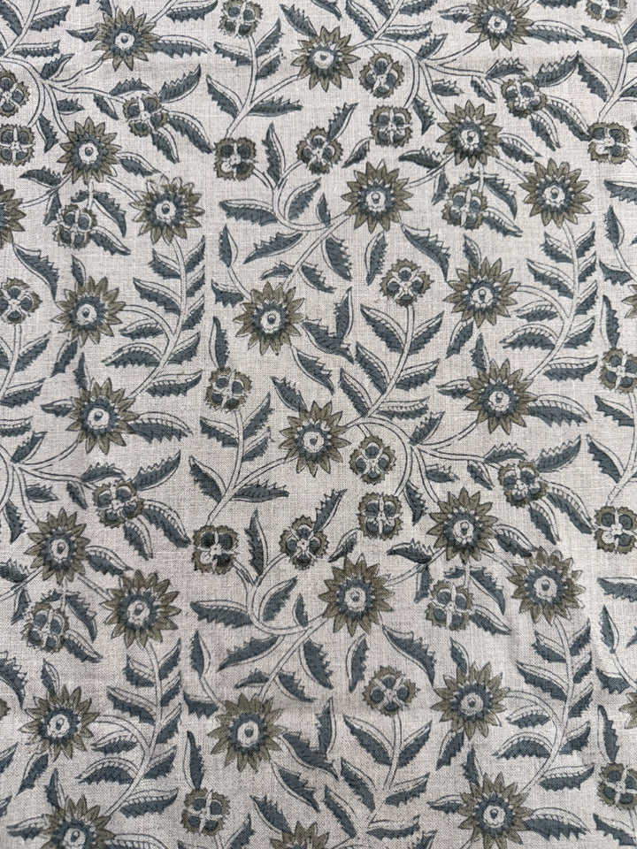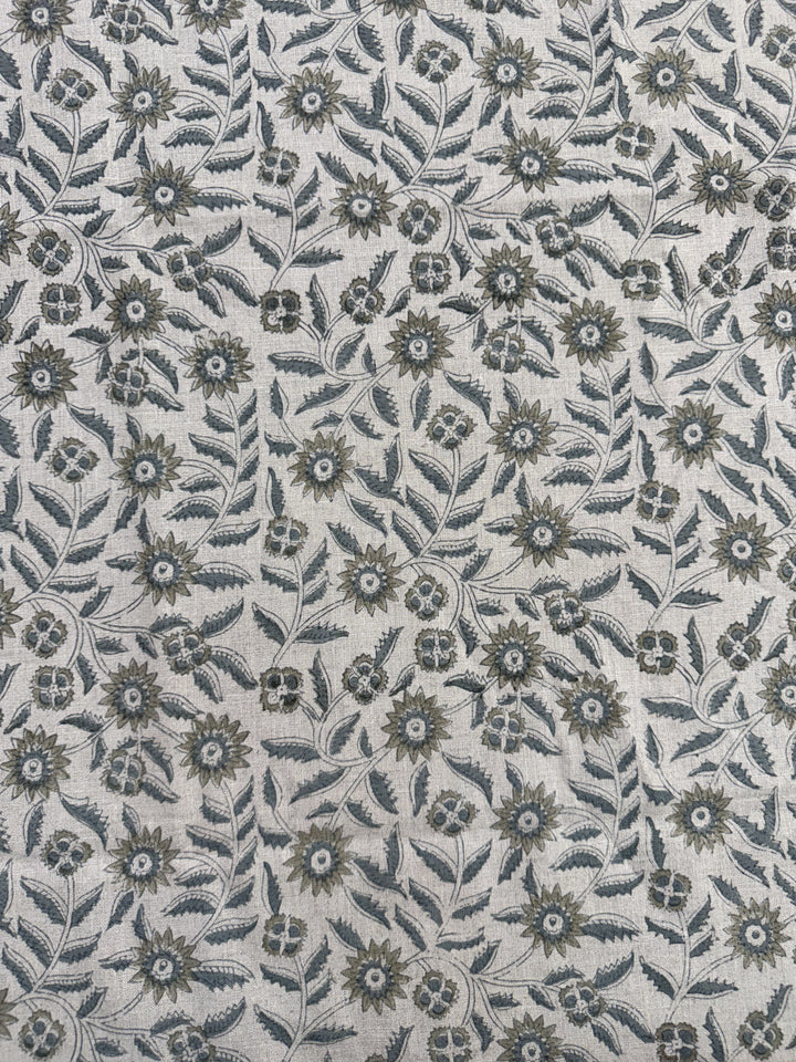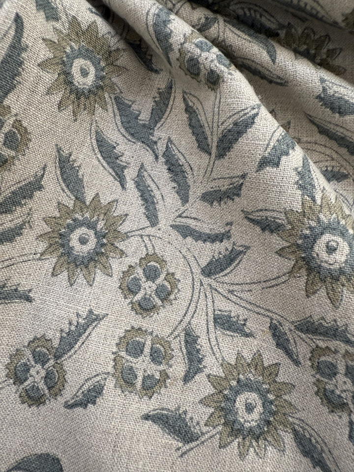 Hand-carved nature-inspired motifs unfold across this fabric in a rhythmic, repeating design. Each layer is block printed by hand using centuries-old techniques passed down through generations of artisans in India. The result is a textile rich in character—bringing softness, dimension, and a distinctly human touch to any space. Designed to layer with ease, it complements both relaxed and refined interiors.