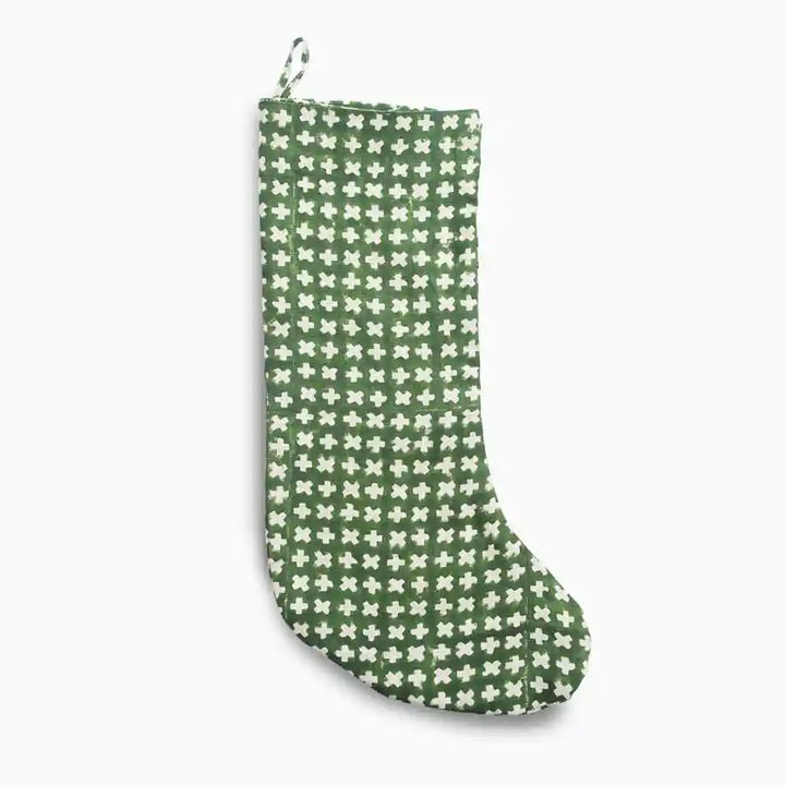 Add a touch of handcrafted charm to your holiday decor with our Floral Block Print Christmas Stocking. Featuring beautiful, artisan-made floral patterns, each stocking is individually block printed for a truly unique look.