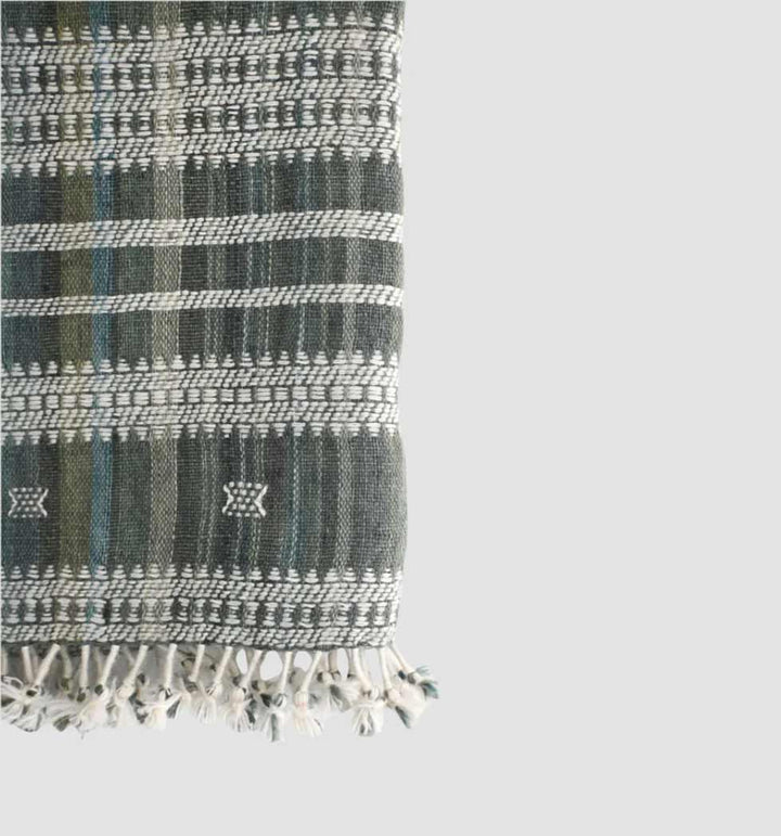 Handwoven Vintage Bhujodi Bed Throw Earthy Blue-Green- 40" x 90"