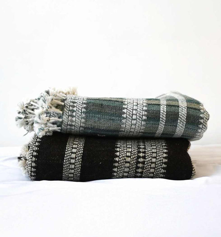 Handcrafted with care by skilled artisans from Bhujodi, a renowned weavers’ village in India, each throw is created using time-honored techniques passed down through generations. Intricate geometric patterns and richly textured weaves reflect a deep cultural heritage while bringing warmth, depth, and intention to modern interiors. Woven from 100% hand-spun wool, these throws have a rustic, textural handfeel—a natural quality that may feel less soft than commercial wool products. This distinctive texture speaks to the authenticity and craftsmanship of traditional wool weaving, honoring the origins of the craft. Whether draped across a bed, sofa, or chair, each throw offers an artful layer rooted in tradition.