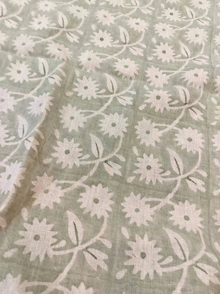 Hand-carved nature-inspired motifs unfold across this fabric in a rhythmic, repeating design. Each layer is block printed by hand using centuries-old techniques passed down through generations of artisans in India. The result is a textile rich in character—bringing softness, dimension, and a distinctly human touch to any space. Designed to layer with ease, it complements both relaxed and refined interiors.