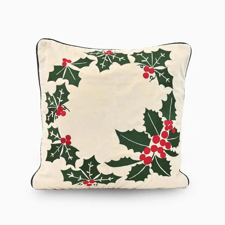 Holly Wreath Applique Pillow Cover