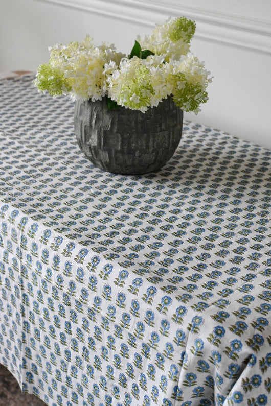 Elevate everyday dining with our hand-block printed tablecloths—crafted using traditional techniques passed down through generations. Each design is carved into wooden blocks and printed by hand, layer by layer, by skilled artisans in India. The result is a tablecloth rich in character and subtle variation—designed to bring artistry, warmth, and a collected feel to any gathering, casual or formal.