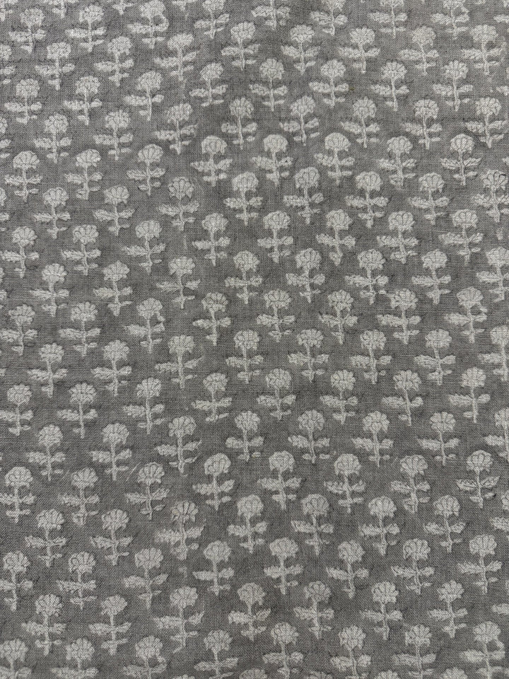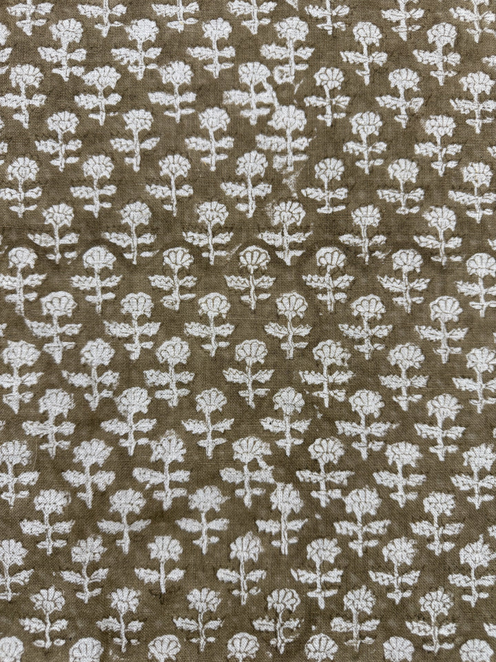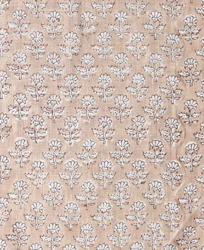 Hand-carved nature-inspired motifs unfold across this fabric in a rhythmic, repeating design. Each layer is block printed by hand using centuries-old techniques passed down through generations of artisans in India. The result is a textile rich in character—bringing softness, dimension, and a distinctly human touch to any space. Designed to layer with ease, it complements both relaxed and refined interiors.
