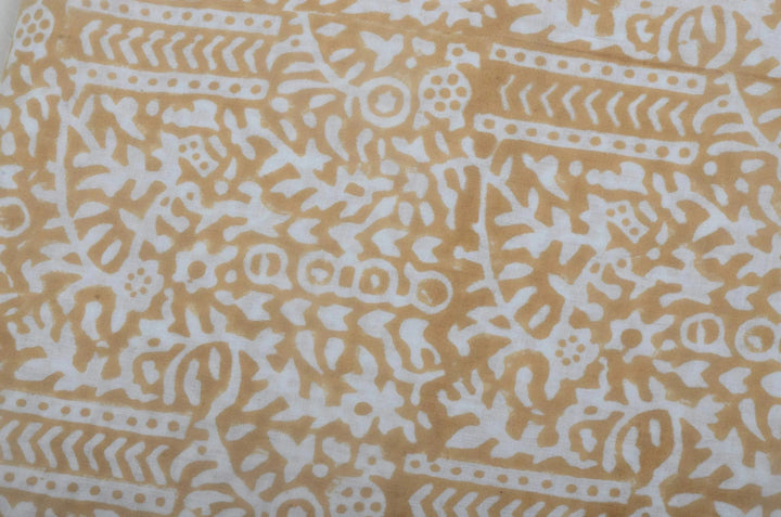 Hand-carved nature-inspired motifs unfold across this fabric in a rhythmic, repeating design. Each layer is block printed by hand using centuries-old techniques passed down through generations of artisans in India. The result is a textile rich in character—bringing softness, dimension, and a distinctly human touch to any space. Designed to layer with ease, it complements both relaxed and refined interiors.