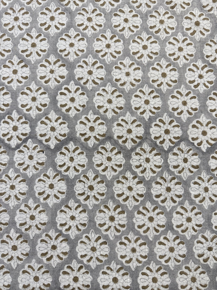 Hand-carved nature-inspired motifs unfold across this fabric in a rhythmic, repeating design. Each layer is block printed by hand using centuries-old techniques passed down through generations of artisans in India. The result is a textile rich in character—bringing softness, dimension, and a distinctly human touch to any space. Designed to layer with ease, it complements both relaxed and refined interiors.