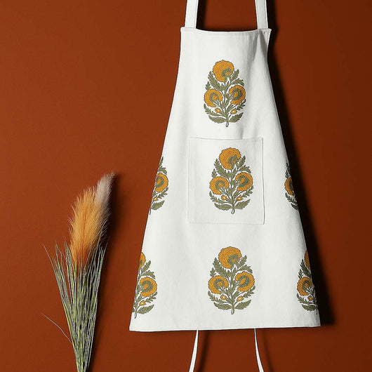 Handmade by artisans in Thread To Form, these aprons bring a cozy, rustic touch to your kitchen. Designed with care, they feature soft, durable 100% cotton fabric and charming patterns inspired by nature and village life. Perfect for cooking, baking, or crafting, these aprons combine style and practicality, making everyday tasks more enjoyable. Washable in cold water using a machine wash with liquid detergent only.