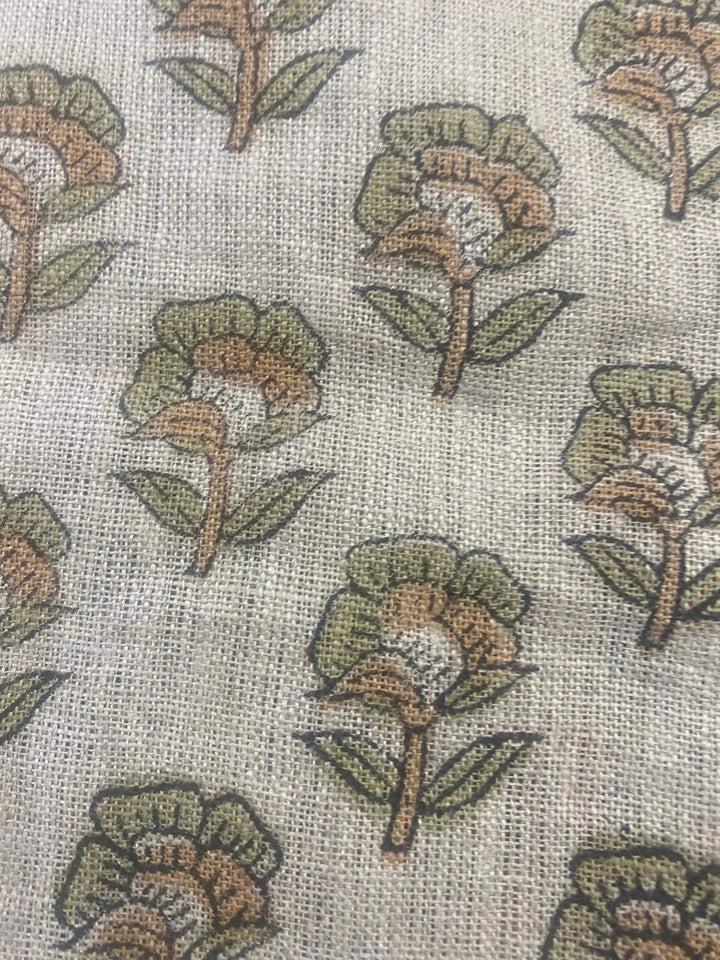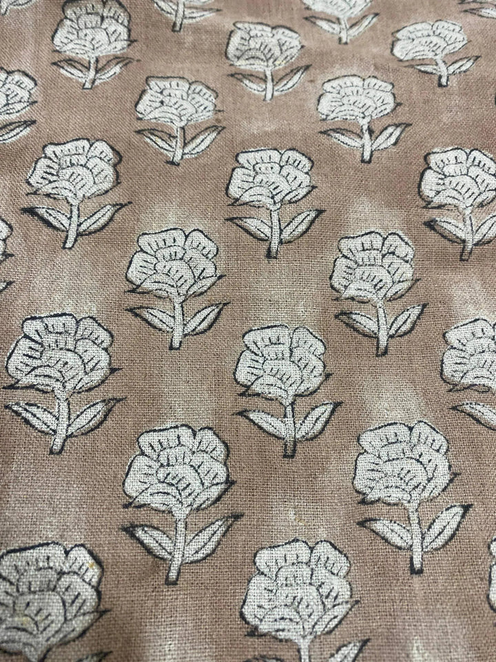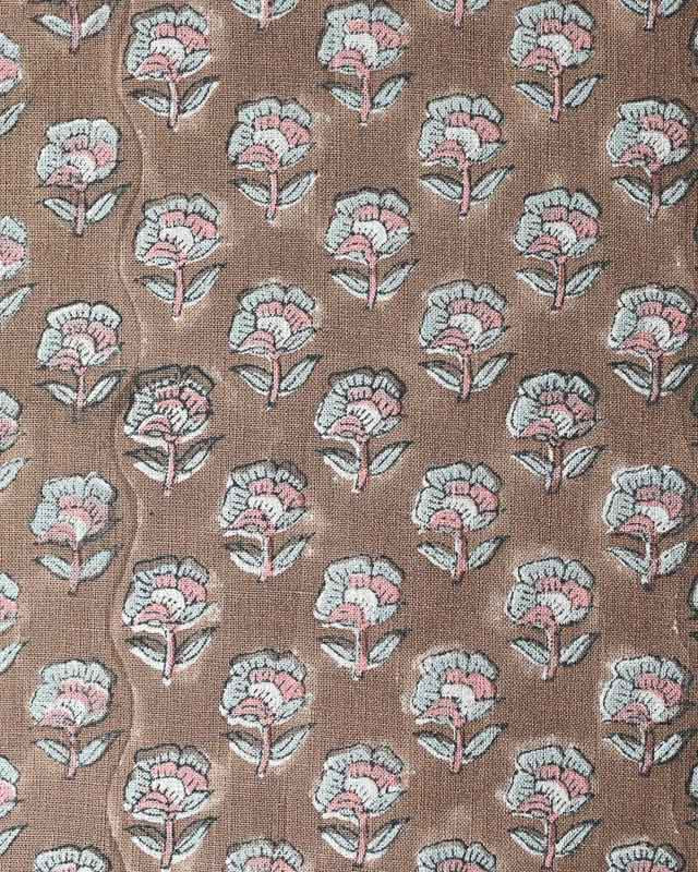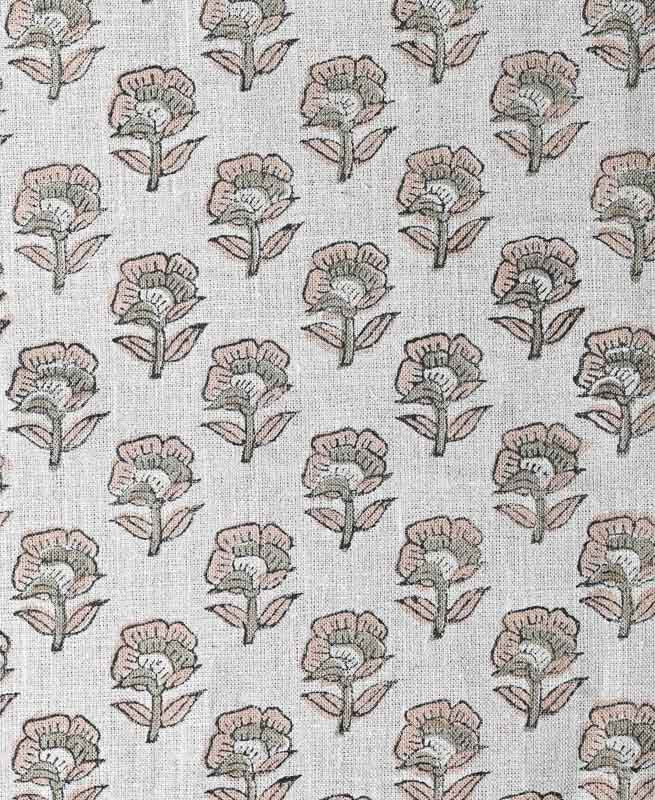 Hand-carved nature-inspired motifs unfold across this fabric in a rhythmic, repeating design. Each layer is block printed by hand using centuries-old techniques passed down through generations of artisans in India. The result is a textile rich in character—bringing softness, dimension, and a distinctly human touch to any space. Designed to layer with ease, it complements both relaxed and refined interiors.