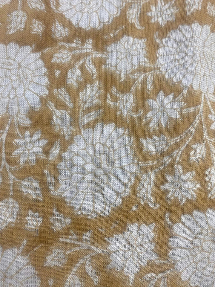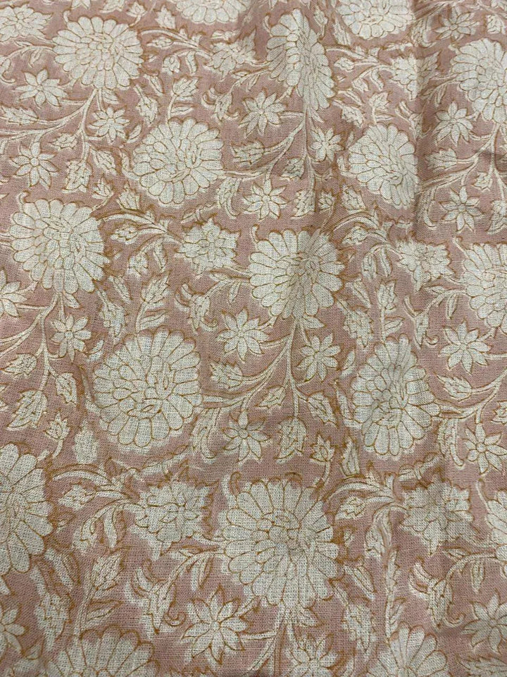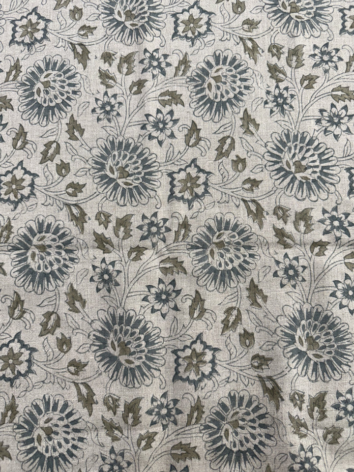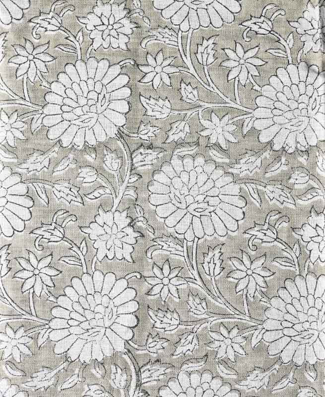 Hand-carved nature-inspired motifs unfold across this fabric in a rhythmic, repeating design. Each layer is block printed by hand using centuries-old techniques passed down through generations of artisans in India. The result is a textile rich in character—bringing softness, dimension, and a distinctly human touch to any space. Designed to layer with ease, it complements both relaxed and refined interiors.