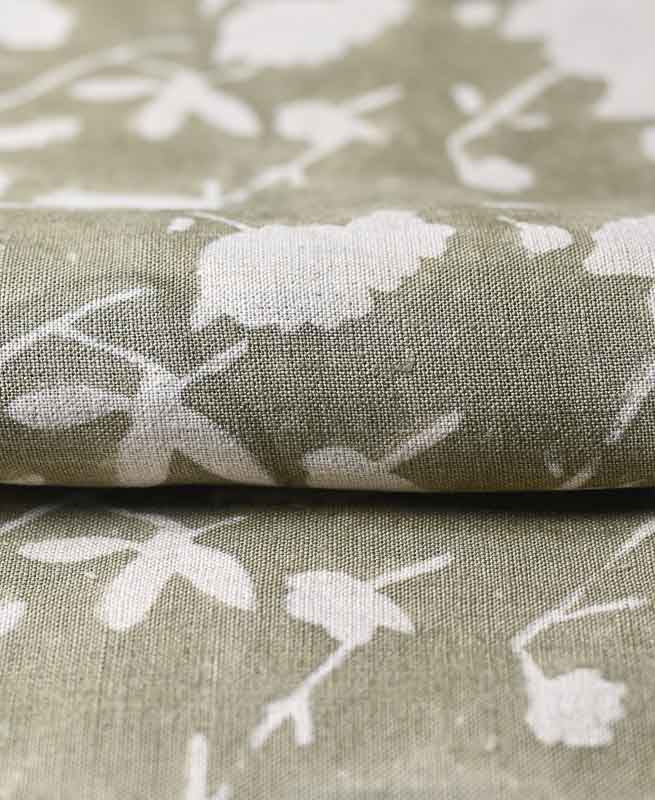 Hand-carved nature-inspired motifs unfold across this fabric in a rhythmic, repeating design. Each layer is block printed by hand using centuries-old techniques passed down through generations of artisans in India. The result is a textile rich in character—bringing softness, dimension, and a distinctly human touch to any space. Designed to layer with ease, it complements both relaxed and refined interiors.