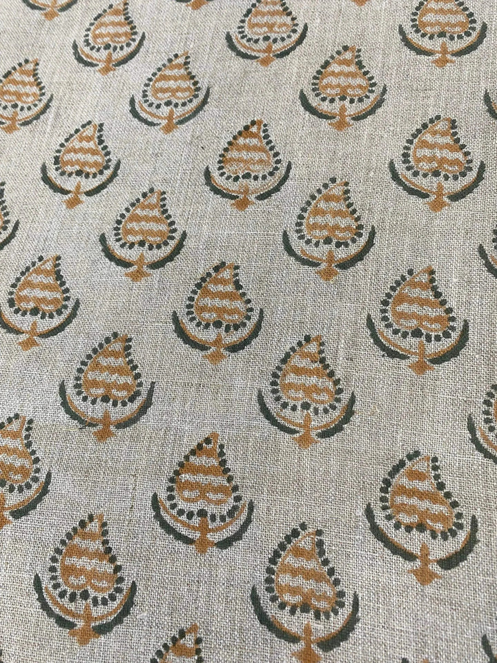 Crafted using time-honored block printing methods, this fabric features hand-rendered patterns with subtle variation and depth. Each design is carved into wooden blocks and printed layer by layer by skilled artisans in India—a process that requires precision, patience, and masterful technique. The result is a richly expressive textile that blends traditional artistry with modern versatility, designed to layer beautifully into both relaxed and refined spaces.