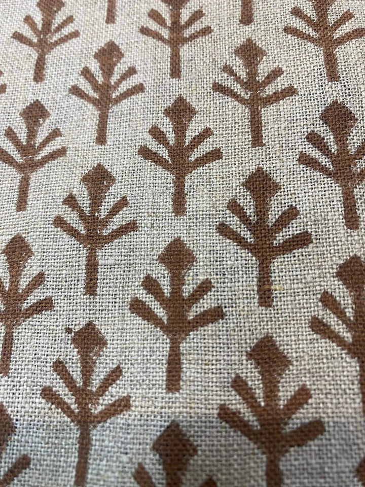 Crafted using time-honored block printing methods, this fabric features hand-rendered patterns with subtle variation and depth. Each design is carved into wooden blocks and printed layer by layer by skilled artisans in India—a process that requires precision, patience, and masterful technique. The result is a richly expressive textile that blends traditional artistry with modern versatility, designed to layer beautifully into both relaxed and refined spaces.