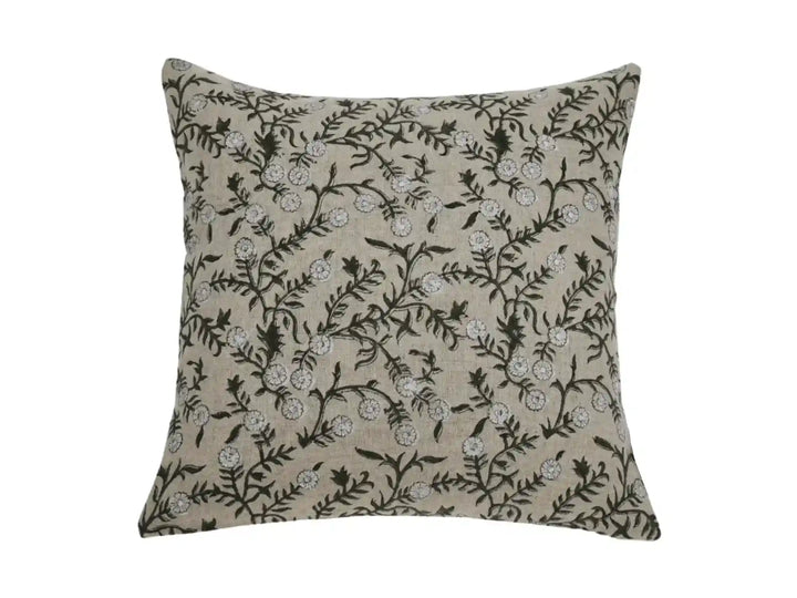 With a beautiful all-over botanical print, this pillow cover is brought to life through traditional block printing. Each design is carved into wooden blocks and carefully printed by hand, one layer at a time, by skilled artisans in India. The result is a richly detailed piece—crafted with care, defined by timeless style, and truly one of a kind. Effortlessly versatile, it layers into both relaxed and refined spaces with ease.