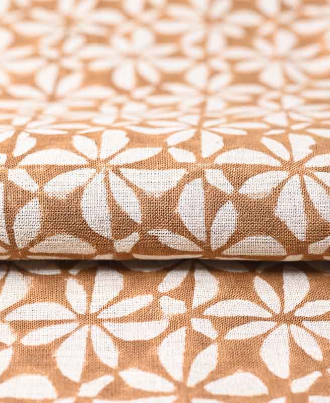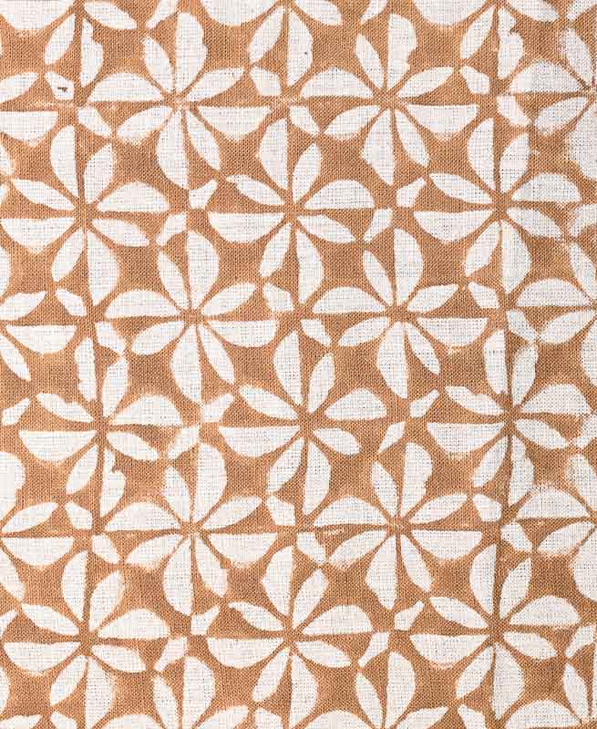 Crafted using time-honored block printing methods, this fabric features hand-rendered patterns with subtle variation and depth. Each design is carved into wooden blocks and printed layer by layer by skilled artisans in India—a process that requires precision, patience, and masterful technique. The result is a richly expressive textile that blends traditional artistry with modern versatility, designed to layer beautifully into both relaxed and refined spaces.