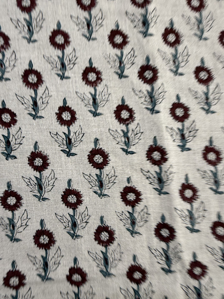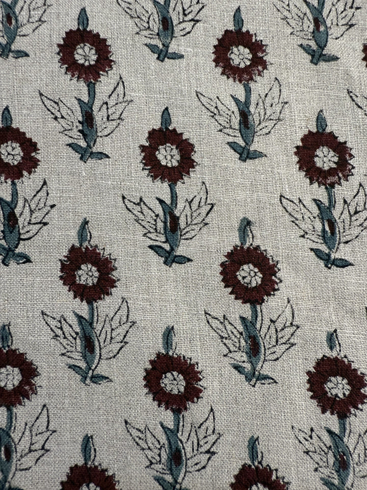 - Due to the nature of hand-printed fabrics, subtle variations are to be expected and contribute to each piece’s distinctive beauty