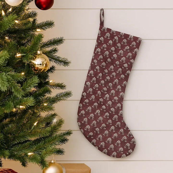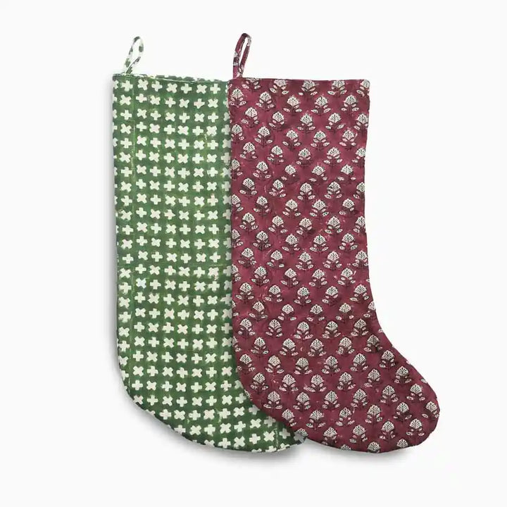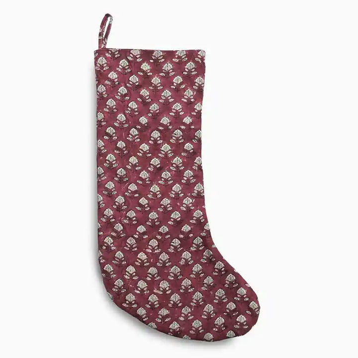 Maroon Floral Block Print Stocking