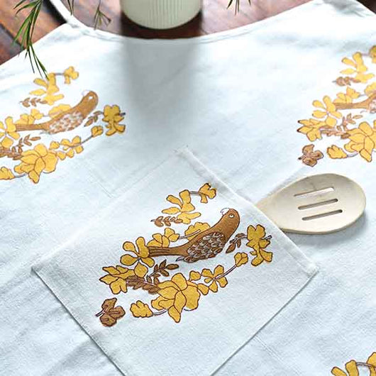 Handmade by artisans in Thread To Form, these aprons bring a cozy, rustic touch to your kitchen. Designed with care, they feature soft, durable 100% cotton fabric and charming patterns inspired by nature and village life. Perfect for cooking, baking, or crafting, these aprons combine style and practicality, making everyday tasks more enjoyable. Washable in cold water using a machine wash with liquid detergent only.