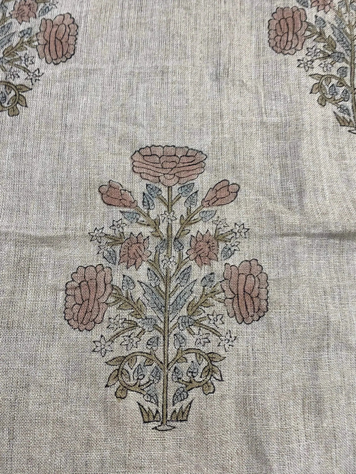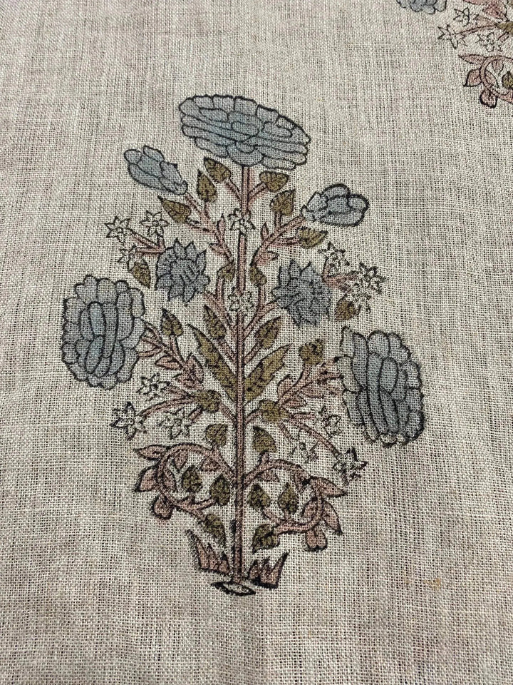 Hand-carved nature-inspired motifs unfold across this fabric in a rhythmic, repeating design. Each layer is block printed by hand using centuries-old techniques passed down through generations of artisans in India. The result is a textile rich in character—bringing softness, dimension, and a distinctly human touch to any space. Designed to layer with ease, it complements both relaxed and refined interiors.