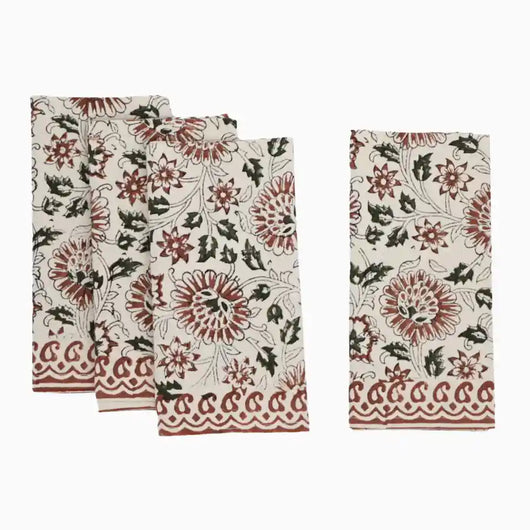 Elevate everyday dining with our hand-block printed napkins—crafted using traditional techniques passed down through generations. Each pattern is carved into wooden blocks and printed by hand, layer by layer, by skilled artisans in India. The result is a napkin rich in charm, character, and subtle variation—designed to bring a sense of artistry and warmth to both casual meals and special occasions.
