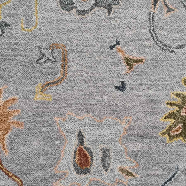 Rooted in timeless artistry, this hand-tufted rug is crafted from a premium blend of wool and viscose, offering both durability and refined beauty. The strength and warmth of wool meet the silky sheen of viscose, creating a plush surface that feels luxurious underfoot. Inspired by classic Oushak motifs, its decorative floral pattern brings depth and tradition into a modern setting. With a palette of deep steel grey, black, and soft accents of white dove and sage, this hand-tufted wool area rug anchors interiors with sophistication and character. Perfect for those who appreciate heritage design reinterpreted with contemporary materials.
