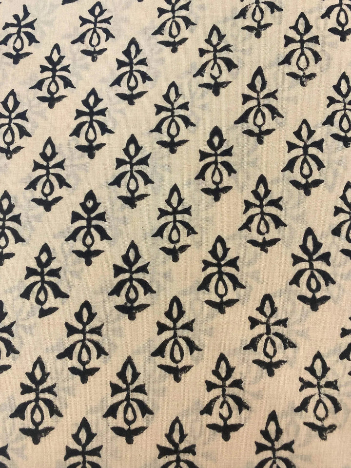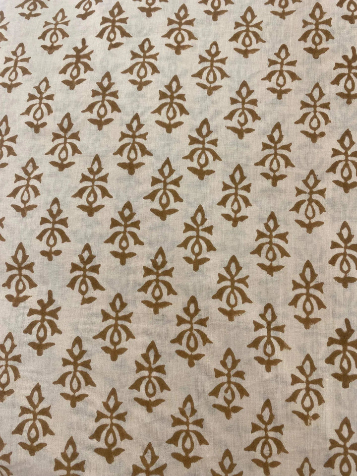 Hand-carved nature-inspired motifs unfold across this fabric in a rhythmic, repeating design. Each layer is block printed by hand using centuries-old techniques passed down through generations of artisans in India. The result is a textile rich in character—bringing softness, dimension, and a distinctly human touch to any space. Designed to layer with ease, it complements both relaxed and refined interiors.