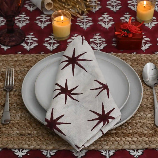 Elevate everyday dining with our hand-block printed napkins‚crafted using traditional techniques passed down through generations. Each pattern is carved into wooden blocks and printed by hand, layer by layer, by skilled artisans in India. The result is a napkin rich in charm, character, and subtle variation‚designed to bring a sense of artistry and warmth to both casual meals and special occasions.