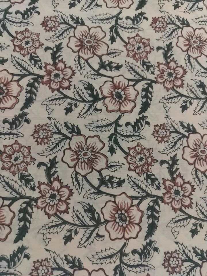 Hand-carved nature-inspired motifs unfold across this fabric in a rhythmic, repeating design. Each layer is block printed by hand using centuries-old techniques passed down through generations of artisans in India. The result is a textile rich in character—bringing softness, dimension, and a distinctly human touch to any space. Designed to layer with ease, it complements both relaxed and refined interiors.