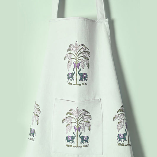 Handmade by artisans in Thread To Form, these aprons bring a cozy, rustic touch to your kitchen. Designed with care, they feature soft, durable 100% cotton fabric and charming patterns inspired by nature and village life. Perfect for cooking, baking, or crafting, these aprons combine style and practicality, making everyday tasks more enjoyable. Washable in cold water using a machine wash with liquid detergent only.