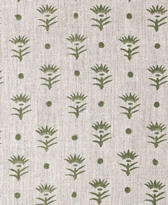 Hand-carved nature-inspired motifs unfold across this fabric in a rhythmic, repeating design. Each layer is block printed by hand using centuries-old techniques passed down through generations of artisans in India. The result is a textile rich in character—bringing softness, dimension, and a distinctly human touch to any space. Designed to layer with ease, it complements both relaxed and refined interiors.