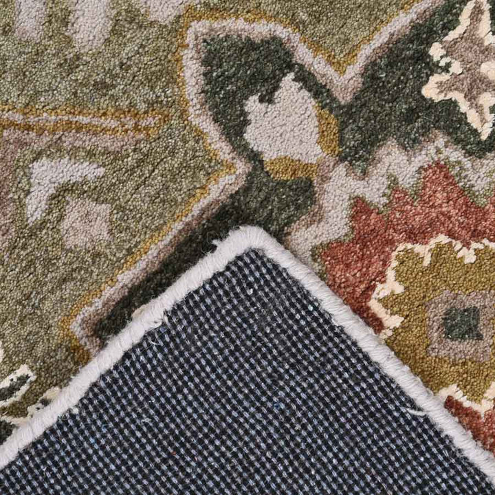 - Construction: Hand-tufted by master artisans using an “all cut” technique, giving the rug a soft, velvety pile with enhanced pattern clarity. Finished with a 100% cotton backing for added stability.